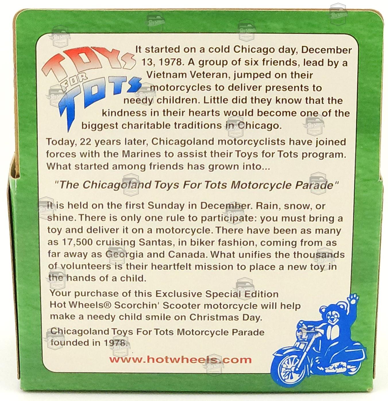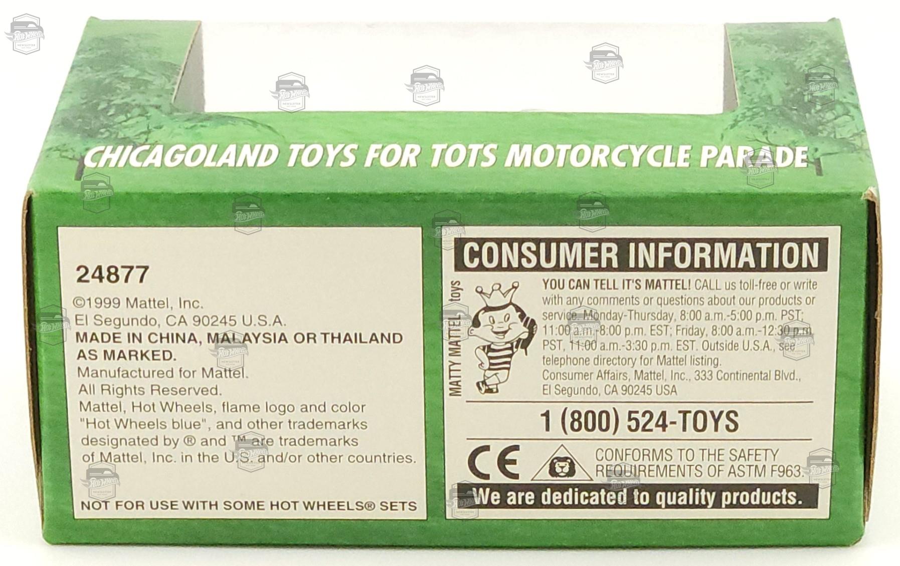 | Description | Red, yellow and black designs with "1999 Chicagoland Toys For Tots" |