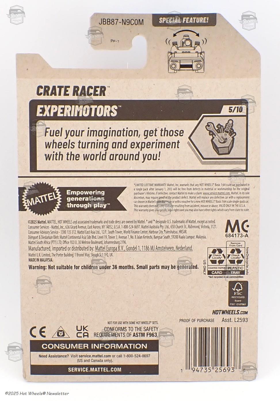 Description | Black, orange, and white designs with "25" and "Crateracer" on sides |