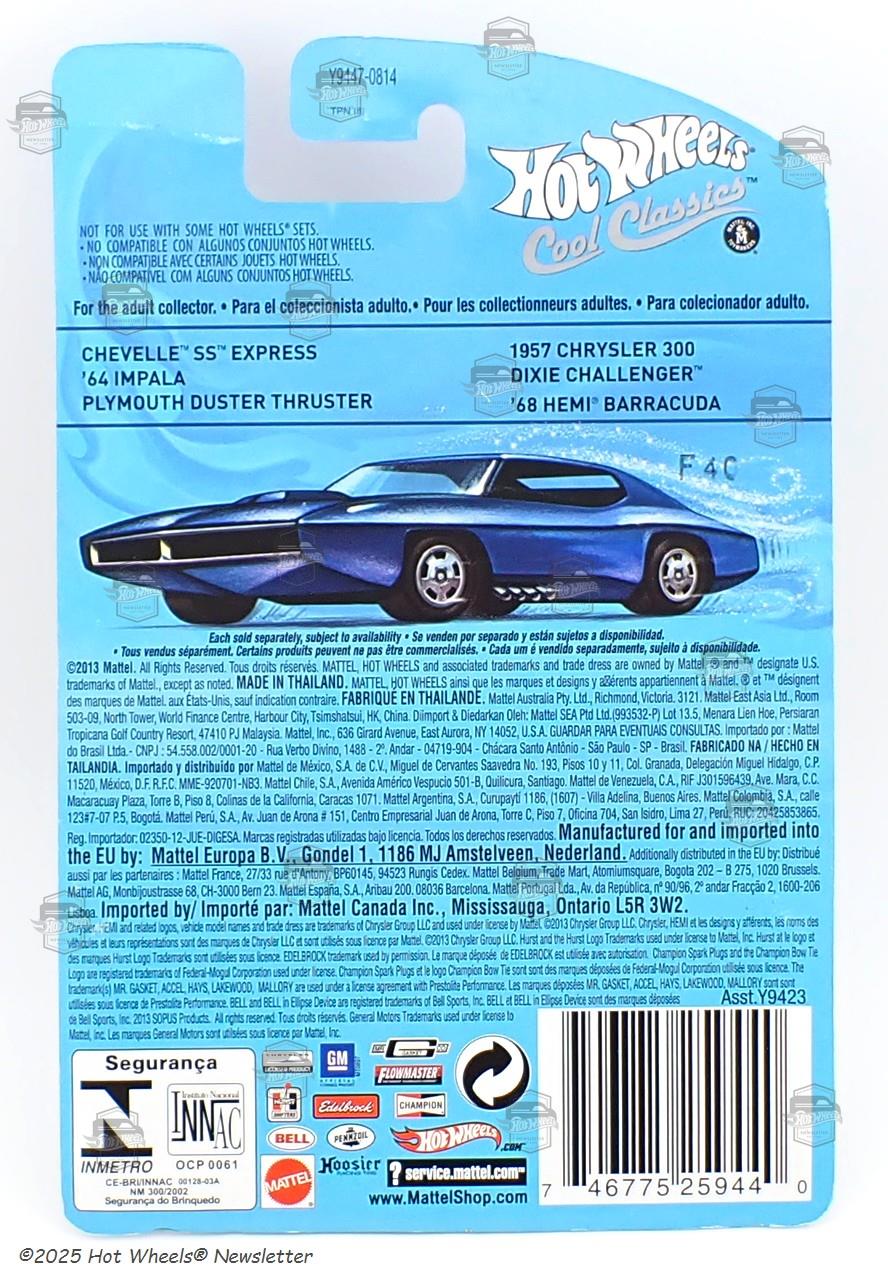 | Description | Gold and yellow stripes on hood, roof, and sides, “HEMI” on hood, “Plymouth HEMI” and livery on sides |